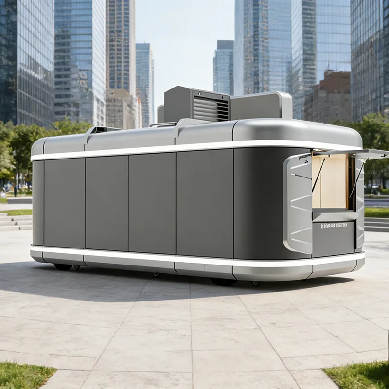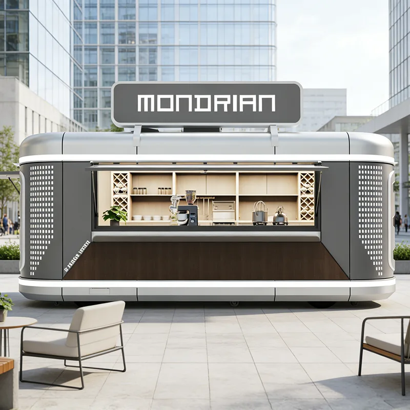 The core configuration precisely meets the needs of beverage mixing, and adopts a modular combination design that can be customized according to needs. The mixing module covers commercial tea extractors, coffee, snow machines, and ice machines, paired with a silent exhaust system to avoid interference from odors affecting the flavor of the beverage; the refrigeration and storage module contains builtin dual-temperature refrigerators and sealed raw material cabinets, which can accurately control the temperature to keep fresh milk, fruits, and syrups fresh, while also reserving layered storage for storing utensils and dry goods; the cleaning module is equipped with a double-basin sink, high-precision purified water system, and sealed sewage collection box forming a closed cleaning loop; the electrical module supports external power supply or silent generator power supply, paired with multiple dedicated sockets and soft LED lighting, to ensure the stable operation of beverage equipment.