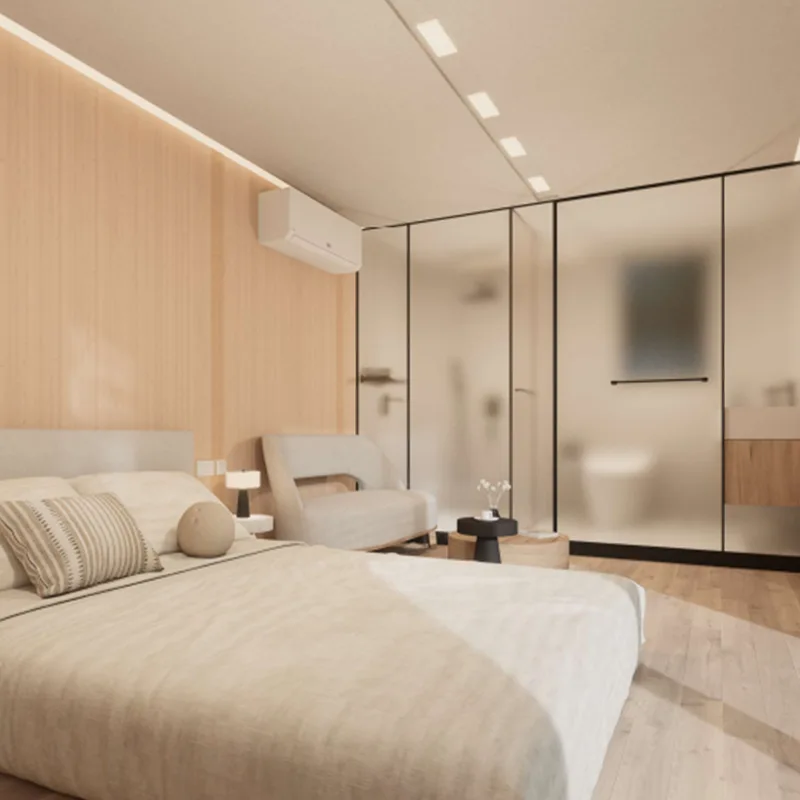 Eco-friendly Materials: Light steel, solid wood, and composite panels; formaldehyde-free, recyclable, andy for living.